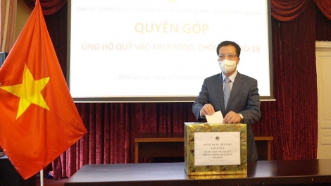 (VOVWORLD) - В отклик на призывы президента Вьетнама, премьер-министра и руководителей Министерства иностранных дел, 7 июня посольство Вьетнама в России организовало сбор пожертвований в Фонд вакцин против Covid-19.