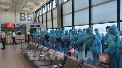 (VOVWORLD) - Сразу после приземления в международном аэропорту Таншоннят о участники рейса прошли медицинскую проверку и были направлены на карантин в соответствии с правилами.
