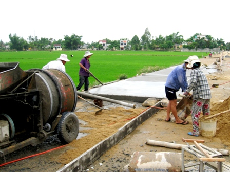 (VOVworld) - Выполняя Государственную целевую программу по строительству новой деревни, провинция Куангнам вложила около 13 триллионов донгов в строительство инфраструктуры. При строительстве новой деревни, с помощью государства, тысячи семей отдали часть своей земли и отвели трудодни для возведения деревенских дорог. Благодаря этому, облик деревни в провинции Куангнам с каждым днём изменяется к лучшему.
