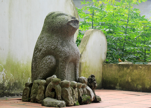 Деревня Дитьви – ныне деревня Дитьдинь общины Фыонгдинь уезда Данфыонг является старинной деревней, которая находится у реки Даи и сохраняет традицию поклонения каменной собаке. Местные жители с благоговением называют каменную собаку «почтенным господином Хоанг Тхатем». В общинном доме деревни Дитьви поклоняются её величеству Линь Лангу – четвёртому по счёту сыну императора Ли Тхань Тонга и почтенному господину Хоанг Тхатю как духу-хранителю селения. По преданию, давным-давно в устье реки Хат жили двое братьев: старшего брата звали Нгок Чи, а младшего – Хоанг Тхать. Старший брат ушёл на поле битвы против врага, поручив своему младщему брату смотреть за домом и садом. После победы над врагом и возвращения домой он увидел, что его жена беремена, и стал сомневаться в своём брате. Из-за ревности старший брат убил своего младшего, выкрикивая: «Сукин сын!» (во вьетнамском языке - «Собака!»). Однако впоследствии его жена родила существо, имеющее странную форму, что доказало невиновность младшего брата, который после смерти превратился в камень. Впоследствии этот камень прибило к берегу в деревне Дитьви. Местные жители этому удивились и вместе вытащили его для поклонения. Считалось, что этой каменной собакой стал младший брат Хоанг Тхать. С тех пор каменная собака приносит местным жителям благополучие и процветание. По представлению жителей деревни Дитьви, почтенный господин Хоанг Тхать и другие духи обеспечивают им зажиточную и счастливую жизнь. Смотритель исторических памятников общины Фыонгдинь Нгуен Чи Кыонг рассказывает: «Мы с большим благоговением поклоняемся почтенному господину Хоанг Тхатю. Раньше при феодальных династиях люди снимали свою шляпу перед его статуей. Эта статуя очень священная. Те, кто потерял имущество и пришли сюда обратиться к ней за помощью, получили обратно своё имущество. Или споры, возникшие между супругами, также разрешены с помощью каменной собаки».