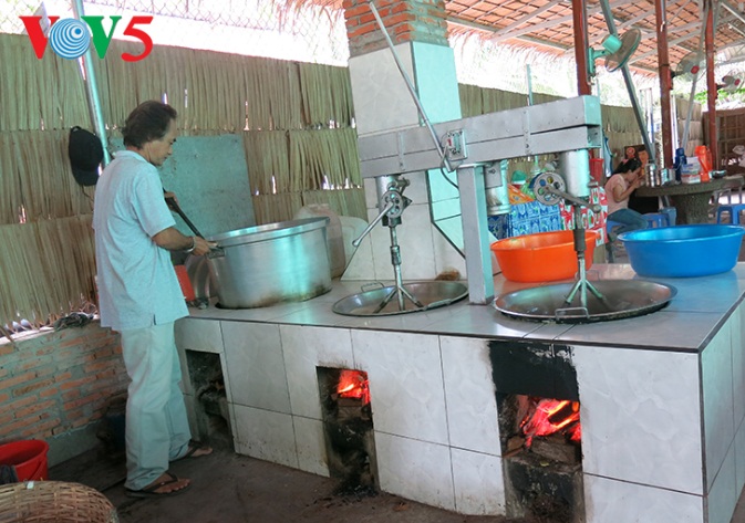Цех по производству конфет крестьянина Там Чунга находится на хуторе Тантхань уезда Тяутхань провинции Бенче. Он с членами своей семьи вручную изготавливает кокосовые конфеты. Заворачивая очередную упаковку, Чан Тхи Хыонг рассказывает о стадиях производства: «В первую очередь, мы дробим мякоть кокосового ореха и выжимаем сок из неё, затем выливаем сок в сковороду и, перемешива его, мы варим в течение 45 минут. Затем получившуюся массу остужаем, разрезаем на кусочки, чтобы получились конфеты. Все стадии производства осуществляются вручную».