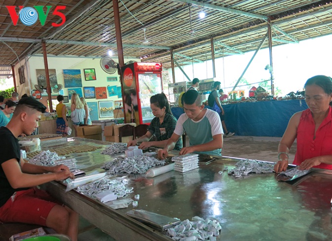 Фан Тху Нгует также занимается изготовлением кустарно-художественных изделий из кокоса. Она подтвердила: «Жизнь местного населения значительно улучшается благодаря изготовлению кустарно-художественных изделий. Например, в свободное время местные жители делают красивые декоративные фонарики из листьев кокоса для повышения семейного дохода».