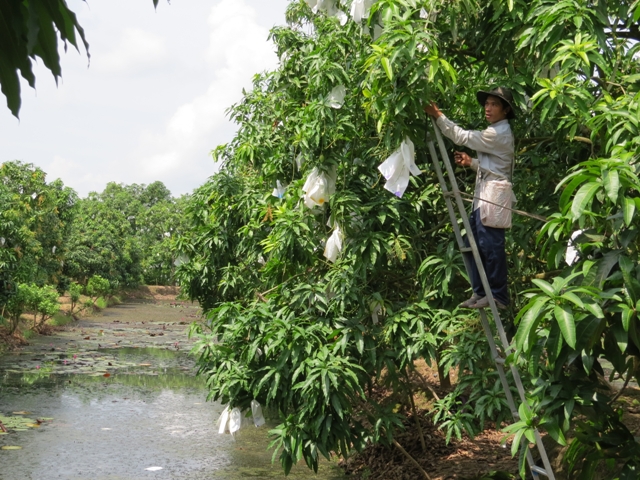 | Крестьянин провинции Донгтхап готовится к новому урожаю манго. Фото: baodongthap.com.vn/My Ly |