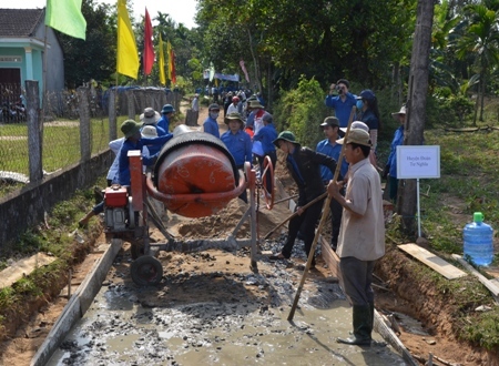 (VOVworld) - В программе строительства новой деревни во Вьетнаме принимают участие разные слои населения страны, в том числе и молодые люди. Участвуя в движении «Молодёжь вместе строит новую деревню» в последние три года, молодые люди всей страны всё более эффективно осуществляет строительство разных сооружений, что способствует изменению облика вьетнамской деревни к лучшему.