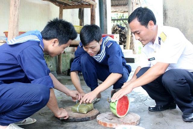 На радиолокационной станции 600, расположенной на острове Намзу в уезде Киенхай провинции Киензянг, царит очень весёлая атмосфера подготовки к традиционному новогоднему празднику. Кроме офицеров и солдат этой радиолокационной станции, в приготовлении новогодних рисовых пирогов «чынг» принимают участие также и учительницы, работники народного комитета общины Аншон и местные жительницы. Заместитель председателя народного комитета общины Аншон Нгуен Тхай Вьет сказал, что радиолокационная станция 600 и местные жители приготовят еду в конце года для проводов некоторых офицеров и солдат на встречу Тэта дома. На столе сервируются такие традиционные блюда, как пирог «чынг», колбаса, солёный репчатый лук,... а также некоторые островные блюда, такие как рыба и кальмары. У микрофона господин Нгуен Тхай Вьет: «Чтобы местные жители встречали праздник Тэт в радостной атмосфере, мы организуем культурно-художественные программы с участием офицеров и солдат военно-морских подразделений, базирующихся на территории нашей общины. Наряду с этим, мы создали рабочие группы для нанесения визитов и передачи новогодних подарков малоимущим семьям и семьям-льготникам».