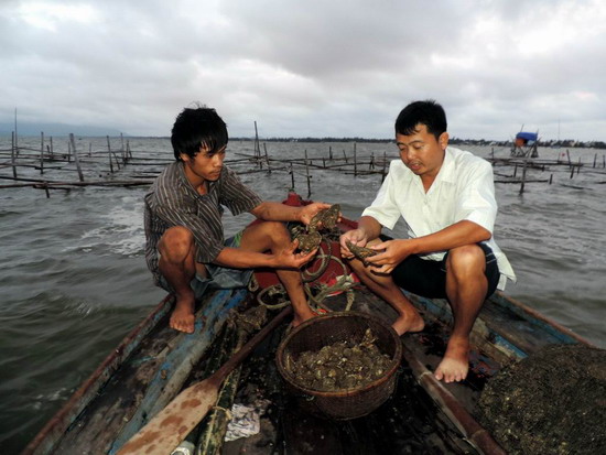 | Разведение устриц в провинции Диньдинь. Фото: baobinhdinh.com.vn |