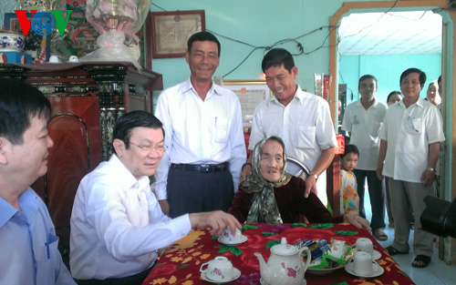 | Президент СРВ Чыонг Тан Шанг в ходе своей недавней рабочей поездки в общину новой деревни Танлан. Фото: VOV/ Minh Hanh |