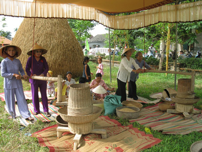 (VOVworld) - В рамках Фестиваля Хюэ, который состоится с 7 по 15 апреля 2012 года, программа праздника «Деревенский базар» с давней традицией деревенской культуры Центрального Вьетнама пройдёт у спокойного моста с черепичной крышей Тханьтоан у реки НьыИ (община Тхюйтхань, городка Хыонгтхюй центральновьетнамской провинции Тхыатхиен-Хюэ). В эти дни в общине Тхюйтхань жители деревни Тханьтхюй Чань спешно готовятся к 6-му деревенскому базару, который впервые прошёл в рамках Фестиваля Хюэ – 2002.