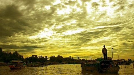 Плавучий рынок на перекрёстке рек в дельте реки Меконг