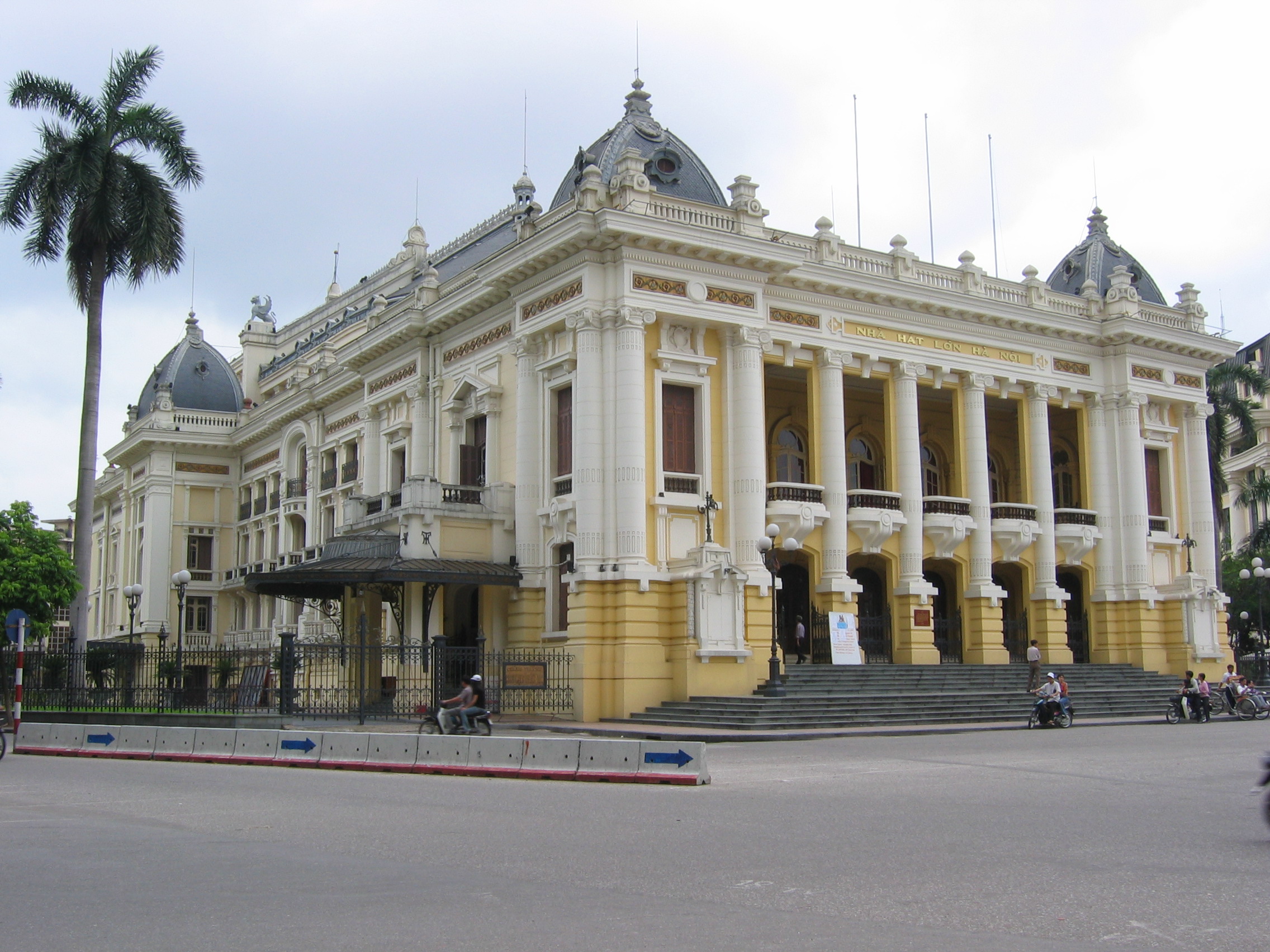 Большой театр Ханоя находится в центре города на улице Чанг Тьен в нескольких шагах от знаменитого озера Возвращённого меча. Японские архитекторы даже назвали его самым красивым архитектурным сооружением в Юго-Восточной Азии. Здание строили с 1901 по 1911 год под руководством французских архитекторов Травари и Савелона. За образец было взято здание французской Оперы Гарнье, поэтому Большой театр Ханоя очень похож на оперные театры, построенные в Европе в начале 20-го века. Площадь здания составляет 2600 квадратных метров, его длина – 87 метров, ширина – 30 метров, а высота – 34 метра. Фасад смотрит прямо на небольшую площадь наподобие древнегреческих архитектурных сооружений. Внутри большая сцена и театральный зал, который вмещает 870 зрительских кресел, обитые кожей или бархатом. На 2-ом и 3-ем этажах находятся ложи для особо важных персон и так называемы «семейные уголки». За сценой расположены гримёрные комнаты, конференц-зал, библиотека, служебные и административные помещения. В фойе на втором этаже часто устраивают буфеты. Большой театр Ханоя является одним из самых знаменитых местных достопримечательностей. В 1997 году здание было реставрировано для проведения первой во Вьетнаме конференции Франкофонии. По словам архитектора Хоанг Дао Киня, реставрация Большого театра Ханоя была очень сложной задачей для него и его коллег. Он вспоминает: «В большом театре самые красивые во Вьетнаме украшения из цинка, поэтому нам пришлось сильно потрудиться. Мы обратились к французским компаниям, но они предложили слишком большую цену – несколько миллионов долларов США. Таким образом, мы сами должны были решить эту проблему. Нужно сказать, что вьетнамские мастера очень талантливые: они придумали семи- и восьмислойные формы для литья цинка. Так затраты на реставрацию украшений из этого материала сократились в 4-5 раз. Французских специалистов просто поразил наш успех».