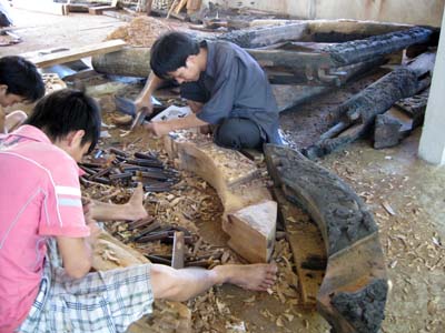 (VOVworld) - «Слушай, девушка, в синей рубахе. Пойдём со мной в Донгки к свахе» - слова частушки, придуманной жителями деревни традиционного промысла Донгки, специализирующейся на производстве изделий из дерева. «Золотые руки» здешних мастеров превращают простые куски дерева в красивейшие кустарные изделия с оттенком традиционного вьетнамского искусства, которые пользуются большим спросом на отечественном и мировом рынках.