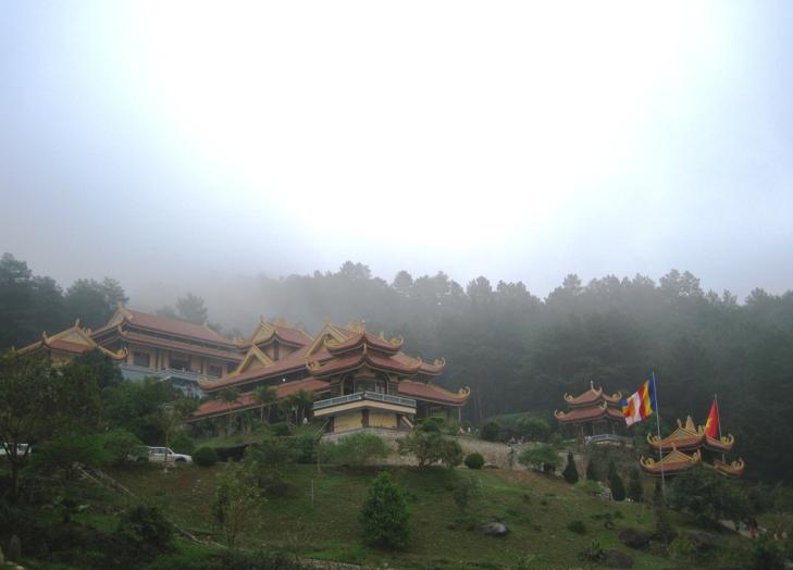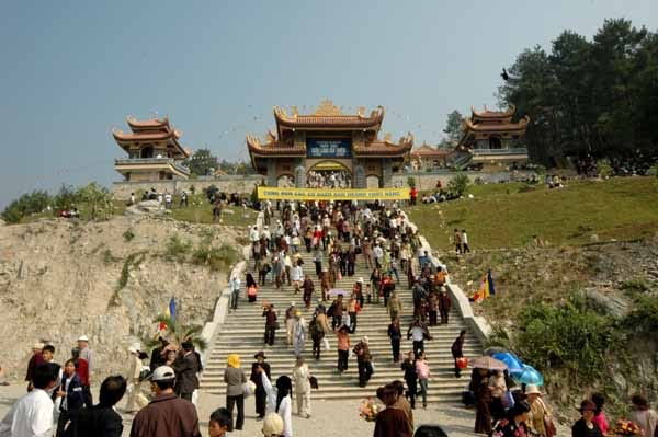 Буддисты взбираются на вершину Тэйтхиен, чтобы посетить один из трёх крупнейших монастырей чукламского дзен-буддизма во Вьетнаме. Он был построен на основе древнего буддистского храма Тхиенан. Эта пагода окружена различными архитектурными сооружениями, построенными в типичном восточном стиле.