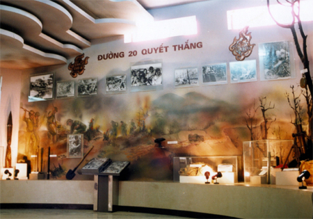 В Музее тропы Хо Ши Мина вы можете собственными глазами увидеть редчайшие экспонаты, рассказывающие о секретной тропе, по которой на фронт шло подкрепление в войне сопротивления американским агрессорам. 3-этажное здание построено на территории 17 тысяч квадратных метров; общая площадь выставочных залов составляет примерно 28 тысяч квадратных метров. У входа в музей находится бронзовый рельеф, на котором изображены все виды войск, передвигавшихся по хребту Чыонгшон. Затем представлены экспонаты, рассказывающие о появлении тропы Хо Ши Мина среди густых жунглей и процессе её развития: от абсолютно секретного начала её эксплуатации до передвижения по ней грузовиков для переброски войск и транспортировки военной техники. Старший полковник Нган Чай отметил: «С 1995 года этот музей называется Национальным музеем тропы Хо Ши Мина – здесь хранятся многие подлинники, взятые из Музея горного хребта Чыонгшон. Сейчас в нашем музее хранится более 20 тысяч экспонатов. На всех трёх этажах этого здания выставлены на показ лишь примерно 2 тысячи предметов, поэтому мы периодически меняем экспонаты. Кроме того, мы постоянно организовываем передвижные выставки на разные темы, чтобы представить широкой публике все экспонаты, связанные с тропой вдоль хребта Чыонгшон».