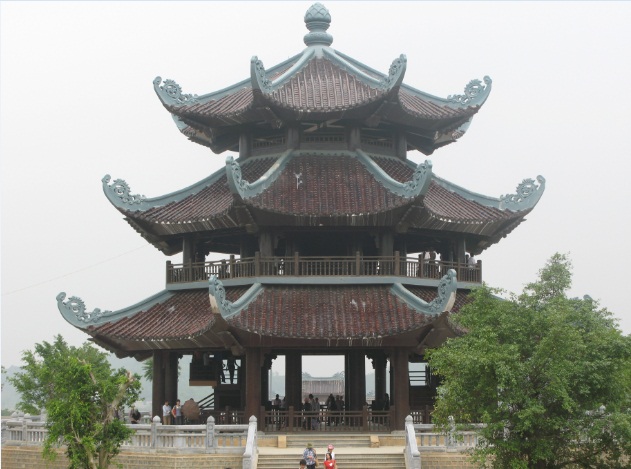 Новая пагода Байдинь тянется снизу вверх по склону горы и включает наружные ворота, внутренние ворота, колокольную башню, дворец Бодхисаттвы и дворец Будды Шакьямуни. На этой башне находится самый большой во Вьетнаме бронзовый колокол весом 36 тонн. Под колоколом находится бронзовый барабан весом 70 тонн. Местные жители считают, что куда долетают звуки колокола, там покровительствует Будда.