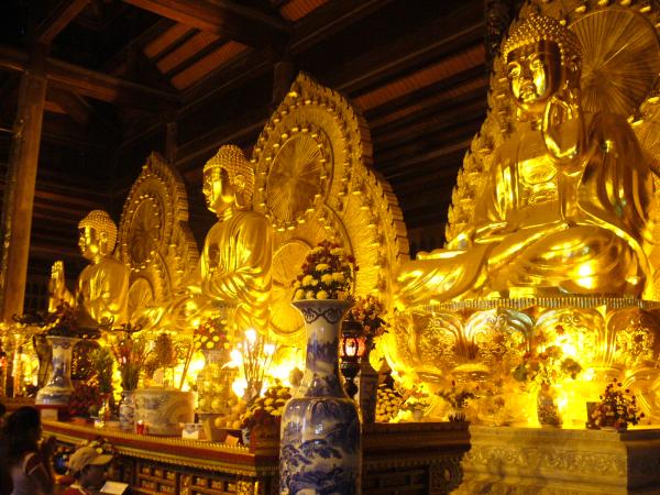В дворцах Бодхисаттвы и Будды Шакьямуни расположены самые большие во Вьетнаме бронзовые статуи Будды и Бодхисаттвы с тысячей глаз и тысячей рук. На вершине холма построен дворец Тамтхэ («Три мира») – самое грандиозное сооружение в этом архитектурном ансамбле. Туриста Ву Ань Куана из города Далат поразила величие выставленных здесь трёх статуй Будды. Он поделился своими чувствами: «Я уже видел эти статуи по телевизору: они действительно очень большие и высокие. Однако они превзошли все мои ожидания. Эти статуи Будды, символизирующие прошлое, настоящее и будущее, покрыты золотом, поэтому они красиво сверкают. Как мне известно, они являются самыми большими в своём роде во Вьетнаме».