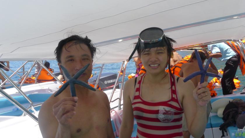 | Туристы с морскими звёздами. Фото: VOV/ Lan Anh |