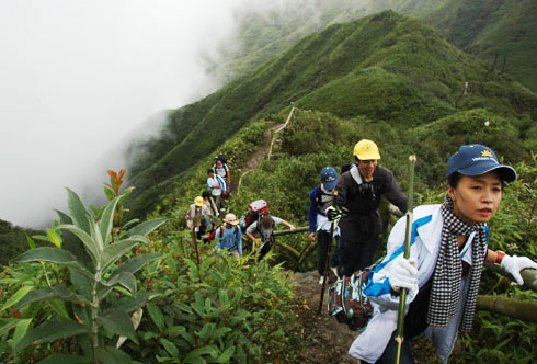 Чтобы покорить вершину Фаншипан высотой 3143 метра, вам придётся преодолеть опасные скалы, овраги и болота. Однако этот опасный маршрут не может остановить юных путешественников, в том числе и группу туристов из Ханоя, в которую вошли 2 молодых человека и 2 девушки. В сердце каждого из них горит страстное желание взобраться на «крышу Вьетнама». Зьеу Линь – самый молодой член этой группы. Она поделилась своими размышлениями: «Молодёжь всегда стремится покорять новые высоты как в буквальном, так и в переносном смысле. На этот раз мы выбрали вершину Фаншипан, хотя это довольно рискованно, потому что мы ещё не имеем опыт скалолазания. Горный рельеф не разрешает вам расслабляться».