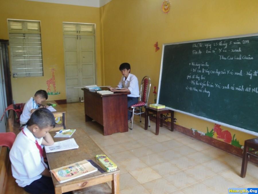 Преподаватели дают уроки в помещении площадью почти 20 квадратных метров. Учителя должны заниматься отдельно с каждым учеником. Кроме того, они готовятся к занятиям как минимум по семи предметам в день. Наряду с преподаванием в школе, с 2009 года учитель по имени Лан также работает детским воспитателем, то есть смотрит за детьми дошкольного возраста. Он сказал: «В классе очень мало учащихся. Мы преподаём с 1-го по 5-й класс, а также смотрим за детьми дошкольного возраста. С каждым школьником приходится заниматься отдельно, чтобы он лучше усваивал материал. Утром учатся 2 класса, и вечером тоже. С 2009 года я работаю и воспитателем. Думаю, что я хорошо понимаю желания детей, поэтому и принял на себя эту ответственность. Сначала было довольно сложно работать с детьми, но потом всё уладилось. Я получил тщательные инструкции от Управления образования и подготовки кадров провинции Кханьхоа».