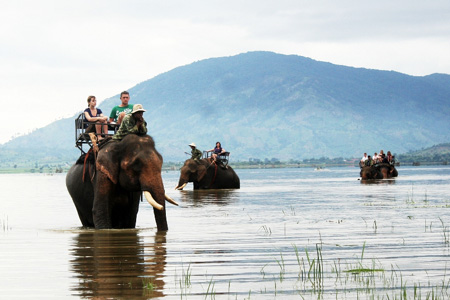 Согласно легендам народности Мнонг, в далёкие времена бог огнял одержал победу над богом воды в затяжной и суровой битве, которая принесла немало бед народности Мнонг. Везде была засуха, и один молодой смелый юноша бросился на поиски воды. Он наткнулся на озеро Лак, куда и привёл своих односельчан. С тех пор народность Мнонг населяет этот сказочный край. Озеро Лак находится в уезде Лак в 52 километрах к югу от города Буонматхуот провинции Даклак. Это естественное водохранилище расположено на высоте 500 метров над уровнем моря, а его площадь составляет порядка 500 гектаров. Издалека озеро Лак похоже на гигантское зеркало посреди величественных гор и старых тропических лесов с богатой флорой и фауной. Многие виды растений и животных внесены в Красную книгу. Следует отметить, что в этих местах насчитывается самая большая во Вьетнаме популяция диких и прирученных слонов. Туристам особенно нравится наблюдать за тем, как всадники управляют слонами. Иногда можно встретить целое стадо слонов, которое возвращается в селение на закате после вечернего купания в чистой реке. Всё это делает озеро Лак удивительно красивым и привлекательным. Турист из города Хайфон Нгуен Мань Ха поделился своими впечатлениями: «Здесь вам предлагают разные туристические услуги: вы можете покататься на слонах или поплавать на деревянных лодках на озере Лак. Кроме того, можно посетить селения представителей народности Мнонг или зайти глубоко в лес полюбоваться дикими птицами и зверями. Я побывал во многих местах, поэтому могу сказать, что некоторые вещи вы можете найти только здесь».