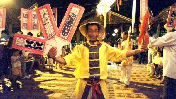 (VOVworld) - Наступает вечер – старинные улицы портового города Хойан становятся ещё красивей, когда зажигаются разноцветные бумажные лампы. Вечером каждый уголок Хойана красив по-своему. Везде слышны звуки струнных музыкальных инструментов и юлы, популярной народной игрушки, а также радостные крики детей, разбивающих глиняные горшки (тоже народная игра). Особое внимание гостей города привлекает к себе спектакль-игра «байчой» на берегу реки Хоай.