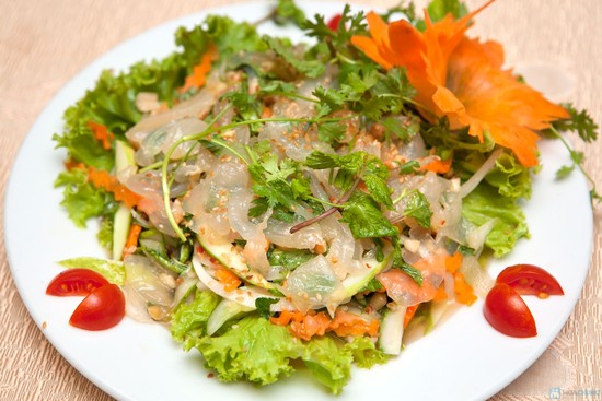 Сотни лет назад жители приморских уездов Тьенхай и Тхайтхюи одновременно занимались и рисоводством, и добычей морепродуктов. Именно самобытность местных жителей привела к возникновению различных блюд из речных и морских продуктов. Здесь водятся медузы, из которых делают салат. Их больше всего ловят в апреле и мае – в сезон размножения. Приготовить вкусный салат из медуз довольно сложно: сначала нужно их тщательно почистить и положить в солённую воду, а потом – нарезать небольшими кусочками и промыть кипятком. В салат добавляют нарезанный репчатый лук, варёную курицу, сушёный кальмар или сушёную говядину, арахис, кокосовую мякоть, лимонные листья, базилику, соль, чеснок и рыбный соус. Это блюдо не только вкусное, но и очень ароматное. Нгуен Ван Хай из провинции Тхайбинь сказал: «Медузы водятся во многих местах вдоль морского побережья, но самый вкусный салат с медузой готовят в провинции Тхайбинь. Этот салат немного острый и немного сладкий; особый аромат ему придаёт местный рыбный соус. Приезжая сюда, я всегда заказываю себе это блюдо, которое одновременно и вкусное, и полезное для здоровья».