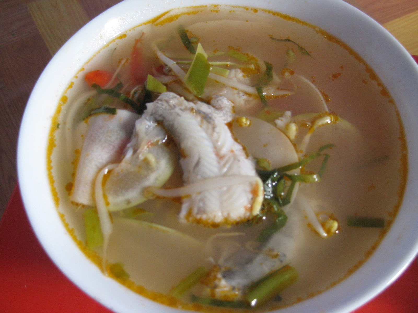 Кроме того, в провинции Тхайбинь туристы могут попробовать жареную рыбу. Это блюдо очень популярно во Вьетнаме, но в разных местах его готовят по-разному. Здесь чаще всего жарят белый или чёрный амур весом примерно 2 килограмма. Рыбу сначала чистят, а потом – нарезают большими кусками без косточек. Затем её маринуют в рыбном соусе с молотой куркумой, после чего рыбу нанизывают на бамбуковый шампур длиной 50 сантиметром. Шампур нужно заранее намазать куркумовым соком, чтобы он не сгорел. Рыбу жарят 4-5 часов на древесном угле, используя веер, чтобы поддерживать стабильную температуру. Ле Тхи Хоп из уезда Тьенхай сказала: «Готовую рыбу нужно аккуратно выложить на тарелку с помощью тонких бамбуковых палочек, так как в противном случае может отделиться корочка из рыбьи кожи. Никто не может устоять перед жареной рыбой золотистого цвета с ароматом куркумы».