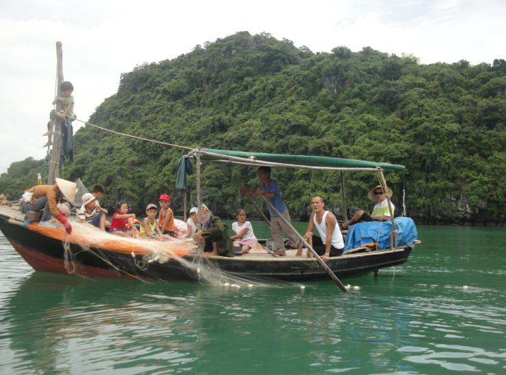 После 4-часового плавания, наконец, туристы прибыли в рыболовецкое селение Вунгвиенг. Это место находится в 24 километрах от берега и является идеальным укрытием от штормов. Численность местного населения превышает 160 человек. Эти люди по-прежнему сохраняют свои рыболовецкие традиции. Именно поэтому селение Вунгвиенг считается уникальным объектом морского туризма, куда направляют своих клиентов многие турагентства. Глава селения Динь Минь Ханг сказала: «Мы сотрудничаем с туристическими компаниями. Таким образом, рыбаки развивают семейное хозяйство, наряду с туризмом. Можно сказать, что мы живём посреди природного наследия и извлекаем выгоду из этого, поэтому понимаем, что нужно бережно относиться к природе».