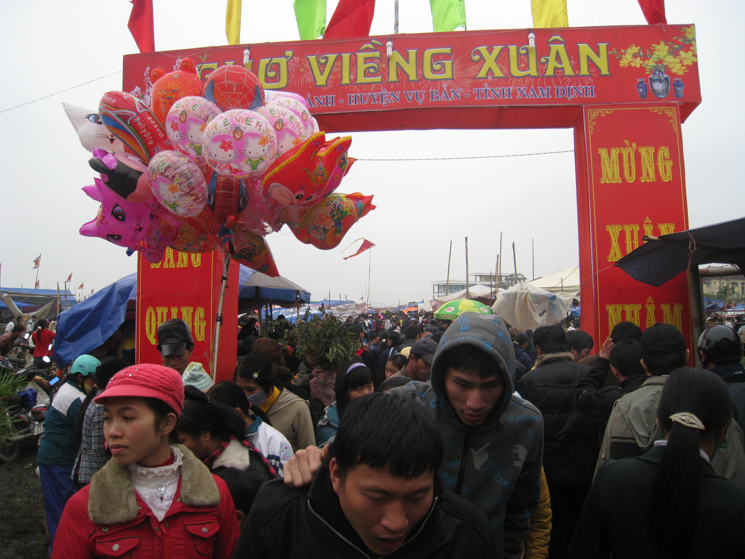 С 7 января по лунному календарю, то есть с 6 февраля текущего года, толпы людей из разных провинций и городов дельты реки Меконг начинают отправляться в сторону северной провинции Намдинь, чтобы успеть на весенний базар Виенг. На самом деле, никто не знает с каких пор в этих местах начали устраивать 2 базара Виенг у храмового комплекса в общине Кимтхай уезда Вубан и у пагоды в городке Намзянг уезда Намчык. По словам старожилов, народный базар Виенг устраивается раз в год и является поводом для молодых парней и девушек встретиться в начале весны. Кроме этого, здесь все стараются купить что-нибудь на счастье, и принести удачу в дом. Местный житель Нгуен Тиен Зунг сказал: «С давних пор базар Виенг считается местом, где можно купить удачу. За этим люди и приходят сюда, и никто не торгуется. Здесь также сохранён бартерный обмен: люди приносят сельхозпродукцию и сельскохозяйственные инструменты, чтобы обменяться друг с другом, поэтому вам необязательно брать с собой деньги. У кого-то овощи, у кото-то лапата, а у другого тяпка. Не важно, что сколько стоит – в этом и заключается особенность бараза Виенг».