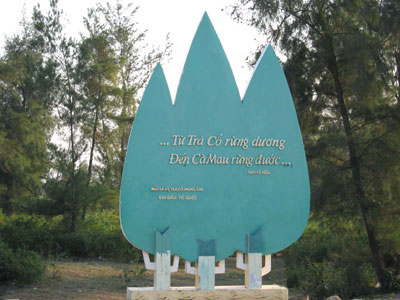 (VOVworld) - Мыс Шави находится в квартале Чако города Монгкай северной провинции Куангнинь. Приехав сюда, вы сразу же увидите зелёный триптих в виде трёх веток сосны, с которого начинается материковая территория Вьетнама. По-вьетнамски «Ша» означает «песок», «Ви» означает «хвост». Это местечко так называется из-за того, что при отливе здесь появляется песчаная полоса, похожая на хвост дракона, существующего уже тысячи лет.