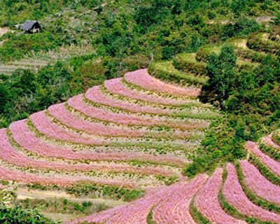 (VOVworld) - В октябре, то есть в середине осени, начинает зацветать гречиха. На всех холмах в северной горной провинции Хазянг гречиха пышно распускает бело-розовые цветы. Будто весь этот край надел на себя новый наряд, сделанный из цветков гречихи. Приехав хоть раз в провинцию Хазянг, вы наверняка не сможете позабыть великолепные поля цветущей гречихи.