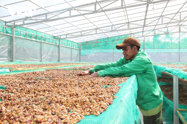 Рабочий сушит кофейные зерна, чтобы приготовить фирменный кофе. Фото: VOV |