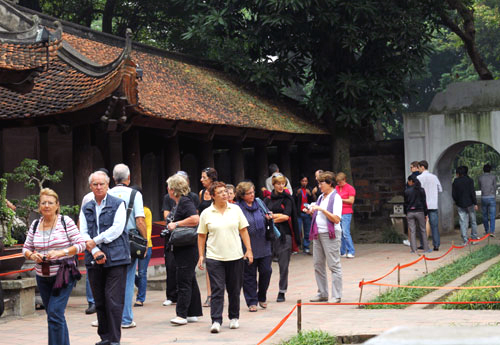 | Иностранные туристы посещают храм литературы «Ванмиеу-Куоктызям» в Ханое. Фото: VietNamNet |