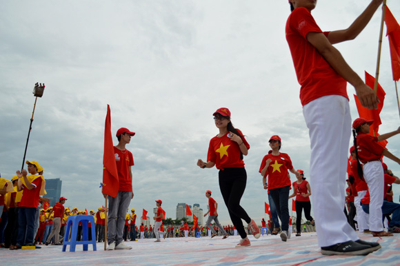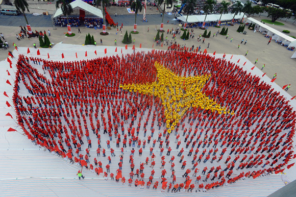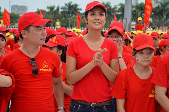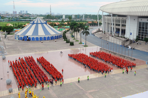(VOV) – 22 июля на ханойском стадионе Мидинь, расположенном в 10-ти километрах к западу от центра города, 4000 человек побили рекорд, собираясь в форме большой капли крови, в центре которой жёлтая звезда.