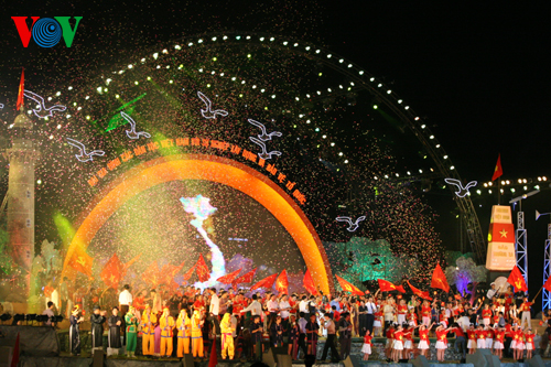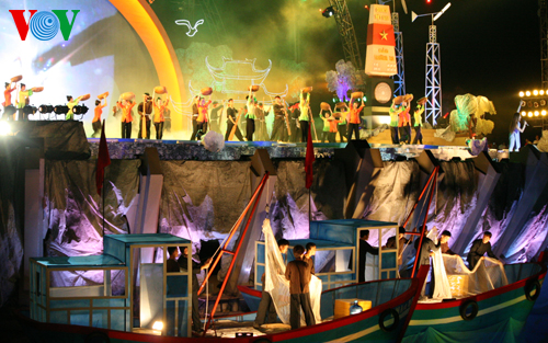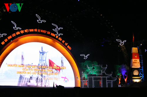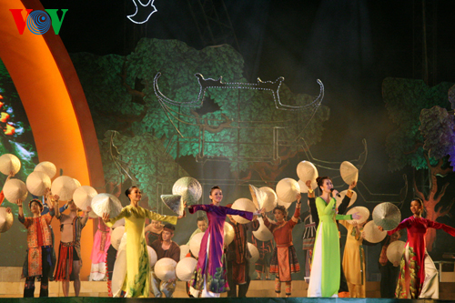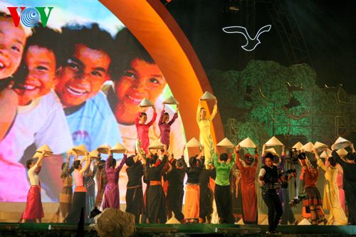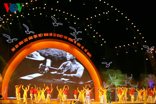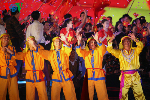 (VOVworld) - В связи с Днем вьетнамской семьи 28 июня, в минувшую субботу в Деревне культуры и туризма народностей Вьетнама в городке Шонтэй под Ханоем Министерство культуры, спорта и туризма организовало художественную программу «Большая семья вьетнамских народностей совместно строит и защишает Родину».