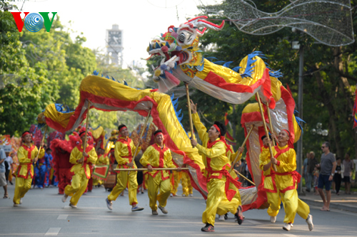 (VOV) - В осеннюю пору в Ханое более тысячи непрофессиональных артистов из 25 уездов и районов столицы приняли участие в Фестивале танцев с драконами-2014.