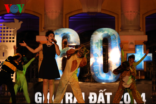 Вечером 29 марта тысячи местных жителей, школьников, студентов и волонтеров собрались на площади Августовкой революции в Ханое для участия в акции «Час Земли-2014». В этом году акция «Час Земли» проходила под лозунгом «Действуй ради более зелёной планеты» с призывом к всем людям на нашей планете бороться с глобальным изменением климата.