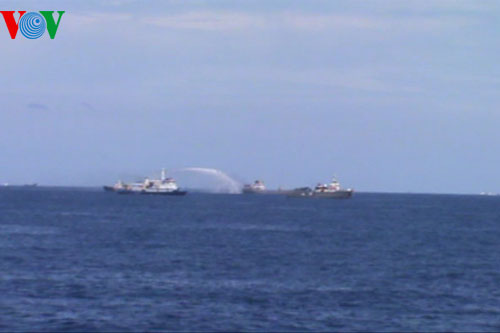 (VOV) - Фотографии с места незаконного установления Китаем буровой платформы «Хайян Шию-981» в эксклюзивной экономической зоне Вьетнама показывают, как китайские корабли умышленно нападают на суда Береговой охраны и Рыбоохраны Вьетнама. Китайская сторона пытается препятствовать выполнению силами Береговой охраны и Рыбоохраны Вьетнама своих задач.