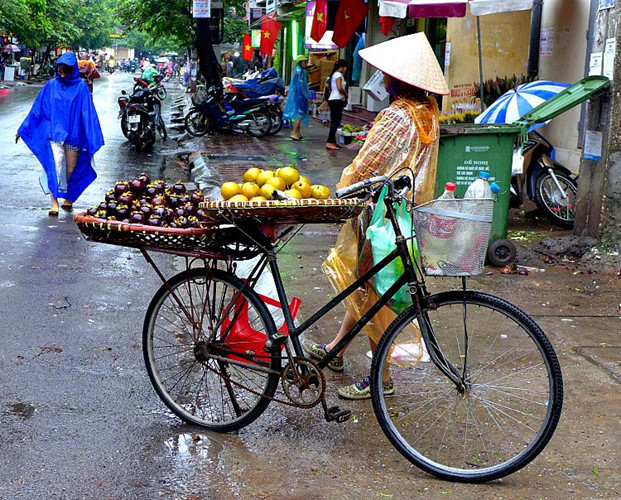 | Женщины продают фрукты на улицах. |