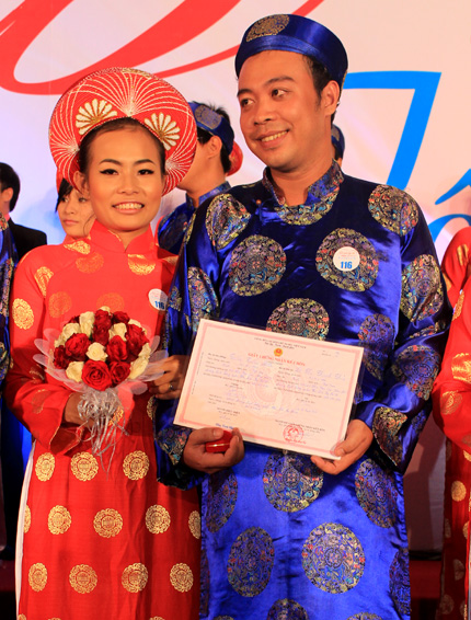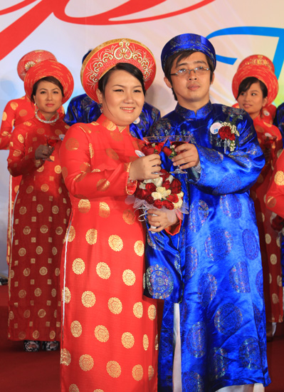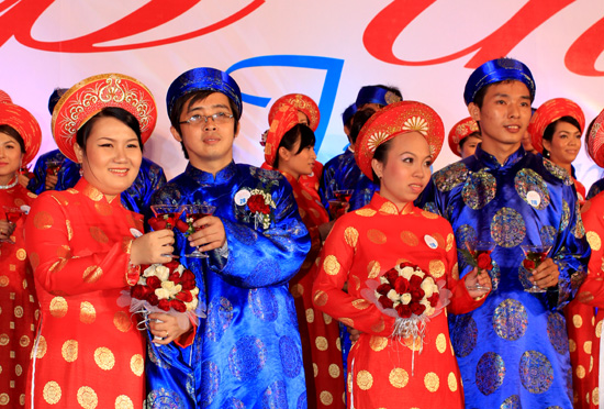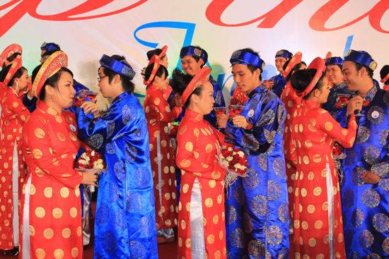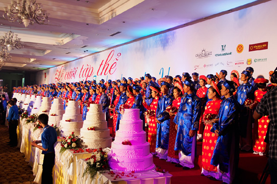 (VOV) - 12 декабря в южновьетнамском городе Хошимине произошло масштабное событие. Центром содействия молодым рабочим города Хошимина была устроена коллективная свадьба, в ходе которой сочетались браком 120 пар молодых людей и девушек, работающих в городах Хошимине и Кантхо, в провинциях Донгнай, Биньзыонг, Биньтхуан и Бариа-Вунгтау. Это мероприятие стало шансом для молодых рабочих, которые живут небогато, значительно сэкономить на свадьбе.