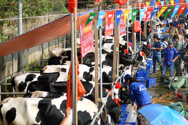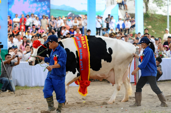 (VOV) – На днях в уезде Моктяу северовьетнамской провинции Шонла прошёл конкурс красоты молочных коров. 110 молочных коров со всей провинции состязались за право назваться лучшей в таких категориях, как внешность, надои молока... На конкурсе молочной корове №52754 господина Зыонг Ван Лонга достались корона, кубок и денежный приз в размере 55 миллионов донгов.