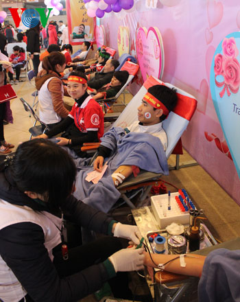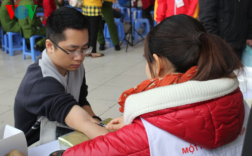 Несмотря на холодную погоду, в воскресенье утром тысячи человек пришли на ханойский стадион «Мидинь» для участия в празднике «Весна для доноров» - добровольной сдаче крови.