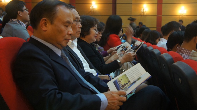 | Зампредседателя НС СРВ Уонг Чу Лыу, гендиректор Радио "Голос Вьетнама" Нгуен Тхе Ки, представители Общества российско-вьетнамской и Общества вьетнамо-российской дружбы присутствуют на презентации книги "Род Президента В.В.Путина" на вьетнамском языке |