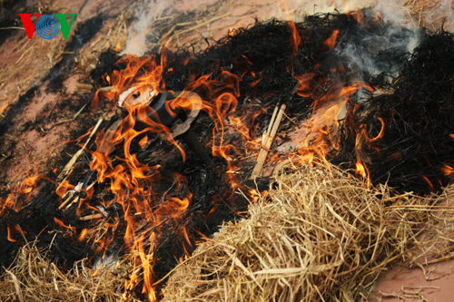В этом году во время Традиционного новогоднего праздника местные жители собрались во дворе общинного дома села Тхикам для участия в соревновании по приготовлению риса.