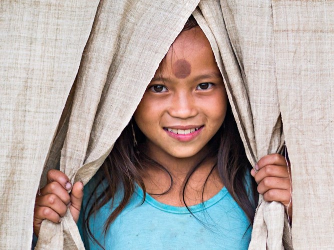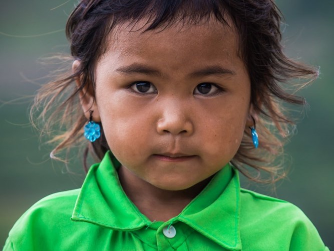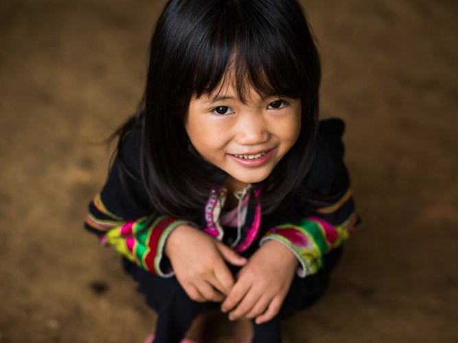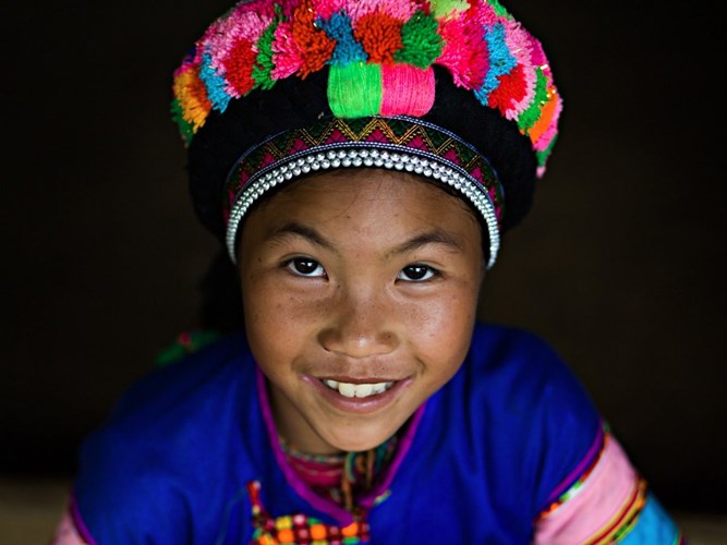 | Улыбающаяся девочка народности Лоло в уезде Батсат провинции Лаокай |