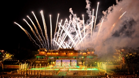 (VOV) - Вечером 7 апреля на площади Нго Мон в городе Хюэ открылся Фестиваль Хюэ 2012 красочным музыкальным шоу на тему "Земля, славящаяся своими наследиями". Кульминацией программы стал уникальный, не имеющий аналогов фейерверк, подготовленный международным пиротехником Пьером Аленом Хубертом, а также фаер-шоу известной группы из Франции Carabosse.
