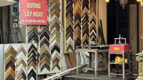 (VOVWORLD) - Улица Нгуентхайхок протянулась почти на два километра – от перекрёстка на Кыанам до улицы Шонтай. Среди суеты и шума городских улиц это место остаётся спокойным уголком. Каждая деревянная рейка, каждая резная деталь на раме для картины напоминает о сохранении воспоминаний и произведений искусства.