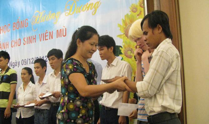 Не только госпожа Нгием Кинь, но и большинство слепых и слабовидящих имеют большую потребность в восприятии информации, расширении кругозора знаний, и познании окружающего мира через книги. Однако, во Вьетнаме брайлевые азбуки пока не широко распространяются по разным причинам, влючая и их высокую себестоимость, так что «говорящие» книги стали выбором для вьетнамских незрячих инвалидов. В 1998 году узнав об их потребности в чтении этих книг, красивая и симпатичная девушка Нгуен Хыонг Зыонг, которая потеряла две ноги в результате автокатастрофы, решила создать библиотеку «говорящих» и брайлевых книг для слепых и слабовидящих. Несмотря на плохое здоровье, она питала решимость претворить эту мечту в реальность. Она сама прочитала и записали тексты на старой кассете. Думая о том, что незрячие дети непременно очень обрадуются, получив ее «говорящие» книги-кассеты, Хыонг Зыонг сразу забывает всю свою усталость и дальше продолжает свою работу. «Сама я – инвалид с физическим дефектом , поэтому очень понимаю и сочувствую всем , у которых такая же судьба. Хотя я потеряла обе ноги, но я считаю себя счастливее других незрячих: у меня есть глаза,чтобы читать для них книги и рассказы, помогать им в ознакомлении с миром через книги».