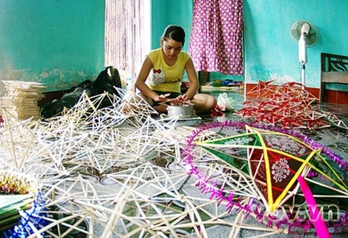 (VOVworld) - Традиционные пятизвездочные фонари совсем не похожи на другие обычные детские игрушки, которые можно купить в любых детских магазинах в любое время, они продаются только в Праздник середины осени. Говоря об этой традиционной игрушке, нельзя не упомянуть о «Центре по изготовлению пятизвездочных фонарей». Это - деревня Баодап общины Хонгкуанг уезда Намчык провинции Намдинь, которую сокращенно называют «Деревней пятизвездочных фонарей».