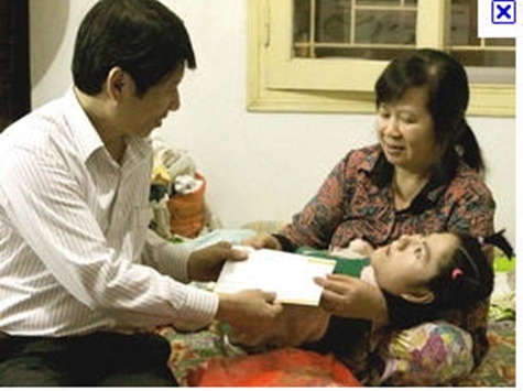А для госпожи Нгуен Тхи Тует, проживающей в селении Нян Хоа общины Суен Мок провинции Бариа–Вунгтау увидеть своего ребенка здоровым и веселым, как он ходит в школу - это единственное счастье и радость в жизни. Ее ребенок с рождения страдает от диоксина «Оранджа» наследственным заболеванием. Ее дедушка воевал на фронте и страдал от этой оранжевой беды. У этой девочки короткие руки и ноги, а все пальцы рук и ног приклеились друг к другу... После бесплатного проведения трех операции эти болезни постепенно прогрессируют... Госпожа Туен сказала, что именно гуманитарная программа Общества принесла ее дочери новую жизнь: «Когда моей дочери было 4 года, мы отправили ее в больницу для проведения операции. Благодаря этому ее здоровье значительно улучшилось. Руки и ноги постепенно становились длинее... Этому я очень была рада».