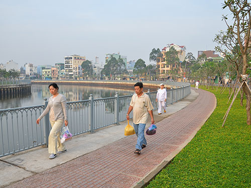 Вдоль канала Ньеулок-Тхинге, который протекает через целых несколько районов города Хошимина, построено примерно 10 скверов, где люди могут заниматься спортом и физкультурой. Тысячи людей по вечерам собираются на тротуарах вдоль этой искусственной водной артерии. Госпожа Ба Кунг каждый день приходит сюда на зарядку: «Утром много людей делает зарядку. По вечерам с 7 до 9 часов также многолюдно. Сюда даже приходят люди из других районов».